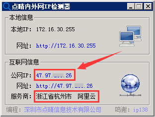 :如何查看本地局域網(wǎng)對(duì)外路由器獲得的WAN口IP地址并判斷本單位是否有公網(wǎng)IP?![]() ![]() 第一步:獲取本單位外部公網(wǎng)IP地址 下載軟件:內(nèi)外網(wǎng)IP檢測(cè)器,打開(kāi)程序IpWatcher.exe,可以看到本單位公網(wǎng)IP和寬帶服務(wù)商信息,一般而言,只有中國(guó)電信、阿里云等云服務(wù)器用戶才有公網(wǎng)IP,中國(guó)移動(dòng)、中國(guó)聯(lián)通以及長(zhǎng)城寬帶等其他服務(wù)商都沒(méi)有公網(wǎng)IP,無(wú)法實(shí)現(xiàn)直接外網(wǎng)訪問(wèn)內(nèi)網(wǎng)OA服務(wù)器。 ![]() ![]() ![]() 第二步:獲取路由器上寬帶運(yùn)營(yíng)商分配給本單位的IP地址 說(shuō)明,本地局域網(wǎng)對(duì)外路由器的訪問(wèn)地址一般是:http://192.168.0.1,不行就用:http://192.168.1.1試試,出現(xiàn)其它IP地址的可能性比較小。 注意問(wèn)題: