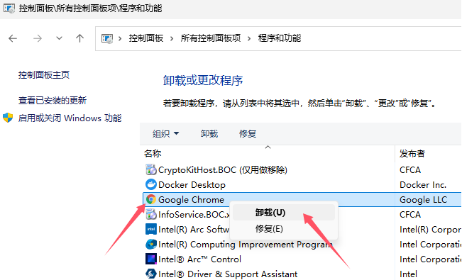 打開,找到“Google Chrome”,鼠標右鍵點擊“卸載”: