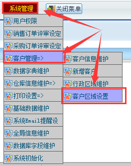 、系統(tǒng)管理——客戶管理——客戶區(qū)域設(shè)置,如下圖所示: