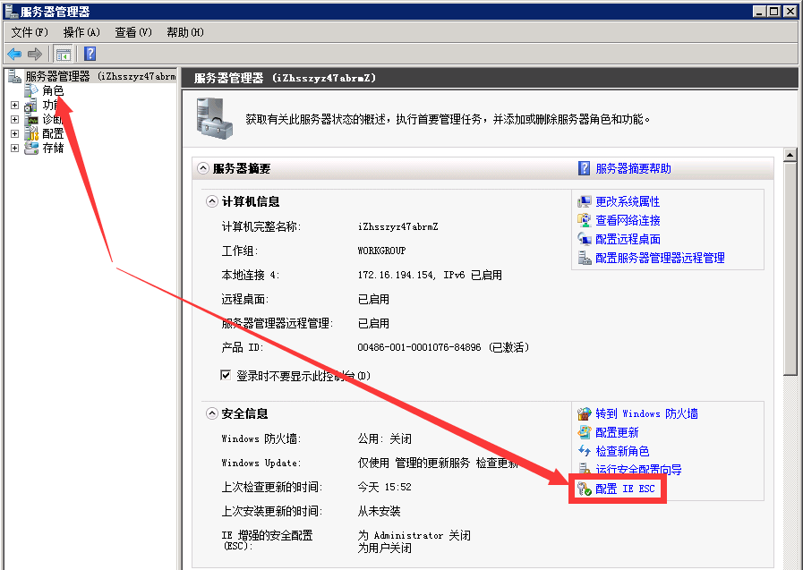 ![]() 關閉Internet Explorer增強的安全配置: ![]() 點擊角色-》添加角色: