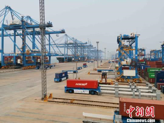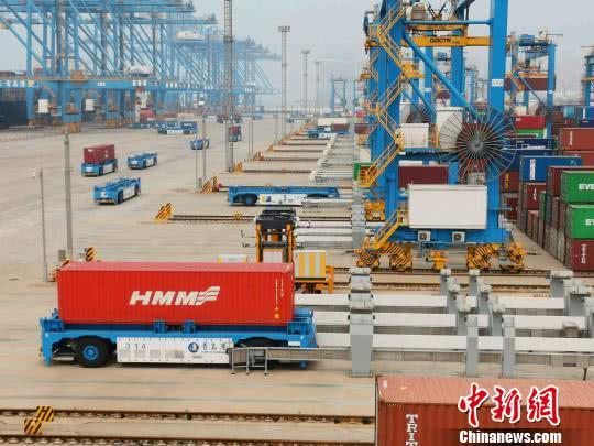 作為亞洲首個全自動集裝箱碼頭,青島港已完成全球首例在實際生產環境下的“5G”遠程吊車操作,正攜手“5G”技術,邁向更加智慧的2.0版。 郝學娟 攝 體型龐大的集裝箱穩穩地“坐”在無人駕駛車上到達“目的地”,黃色“機械爪”敏銳地在三輛車中選出自己應卸的貨物,藍色橋吊忙碌地沿著自己的軌道穿梭,裝卸、堆存集裝箱。