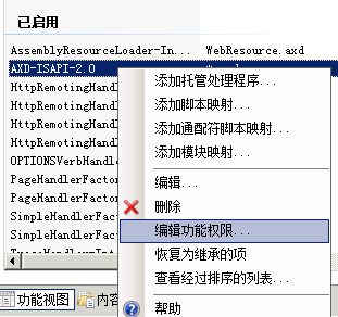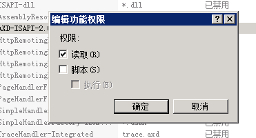 ![]() IIS7也有這樣的功能,但設置方法不太一樣,步驟如下: ①.單擊選擇需要設置權限的文件夾,在右邊視圖中雙擊打開"處理程序映射": ![]() ②.在右鍵菜單中選擇"編輯功能權限...": ![]() ③.只鉤選"讀取"權限,確定后設置完成: ![]() 該文章在 2011/3/13 0:17:54 編輯過 |