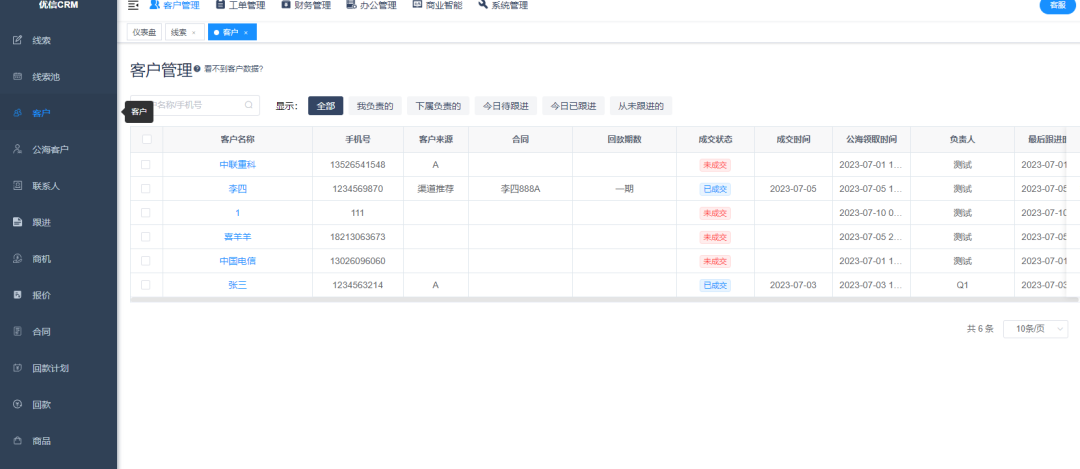 五、數據看板可視化 數據看板就是數據分析,在CRM客戶管理系統后臺,可以不同維度的進行數據分析,在跟進過程中進行分析檢測。 說到這里可以結束了,上述就是對于CRM客戶管理系統的功能的介紹,您大概了解了嗎? 該文章在 2023/11/16 21:43:51 編輯過 |