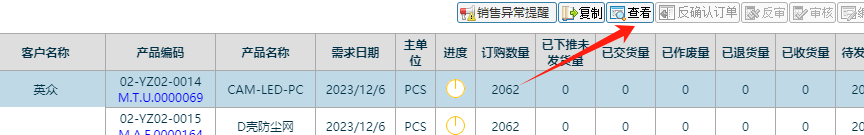 然后找到要修改的訂單,點中后再點擊查看 如下圖: 改完后客戶單號后,點擊修改按鈕保存 如下圖: