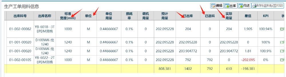 對(duì)應(yīng)就能顯示領(lǐng)出退料的匯總數(shù)據(jù)