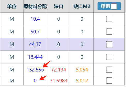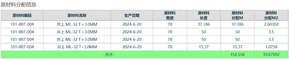 查詢后,若需要看詳情,可以點擊“原材料分配”欄位的藍色字樣查詢詳細分配數據,如下圖: