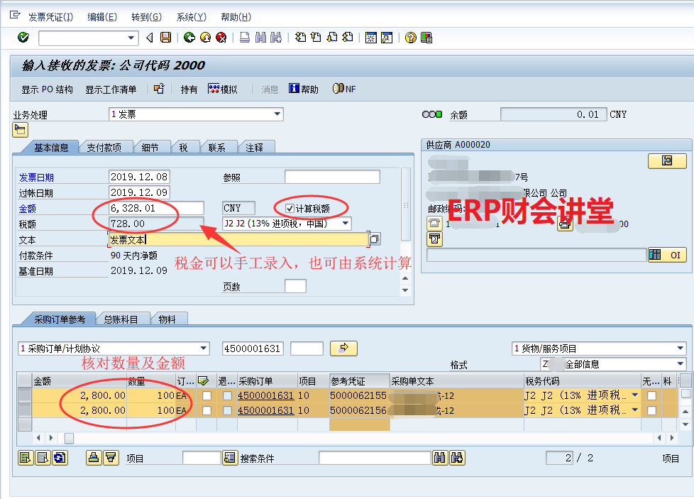 【點晴模切ERP】SAP系統中采購發票校驗
