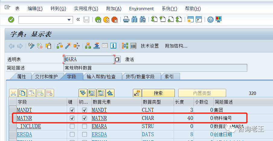 3.工廠數(shù)據(jù)/存儲(chǔ)1視圖中的“最小貨架壽命”、“總貨架壽命”字段在后臺(tái)表MARA(主鍵:集團(tuán)+物料編碼),就是在集團(tuán)級(jí),而不是我們望文生義認(rèn)為的工廠庫(kù)存地點(diǎn)層級(jí)。通過對(duì)這幾個(gè)字段所在后臺(tái)表和組織層級(jí)的分析,我有兩點(diǎn)認(rèn)識(shí):1.事情的細(xì)節(jié)中隱藏著魔鬼,在主體和原則之外還有例外,不能想當(dāng)然的理解,這樣會(huì)導(dǎo)致混淆錯(cuò)誤。2.具體情況要具體分析。像“稅分類”這樣的字段,SAP設(shè)計(jì)是按照物料和發(fā)貨國(guó)來區(qū)分,但在實(shí)施過程中還要分析是否真正滿足客戶業(yè)務(wù)需求,還是要具體情況具體分析的。