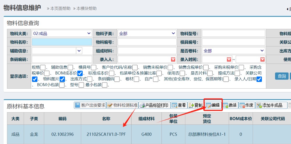 點晴模切ERP標準成本價維護說明