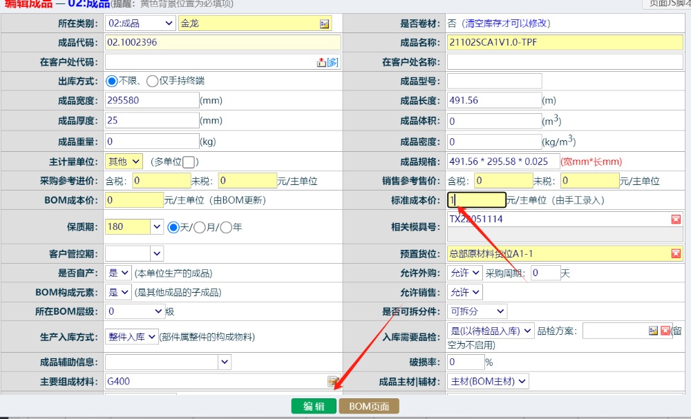 填入標準成本,點擊編輯按鈕完成,如下圖:(注意:若成本需要按生產數量平攤,則成本價統一默認填為1,否則填入真實的標準成本即可) ![]() 點晴模切ERP更多信息:https://moqie.clicksun.cn,聯系電話:4001861886 該文章在 2024/10/18 14:21:43 編輯過 |