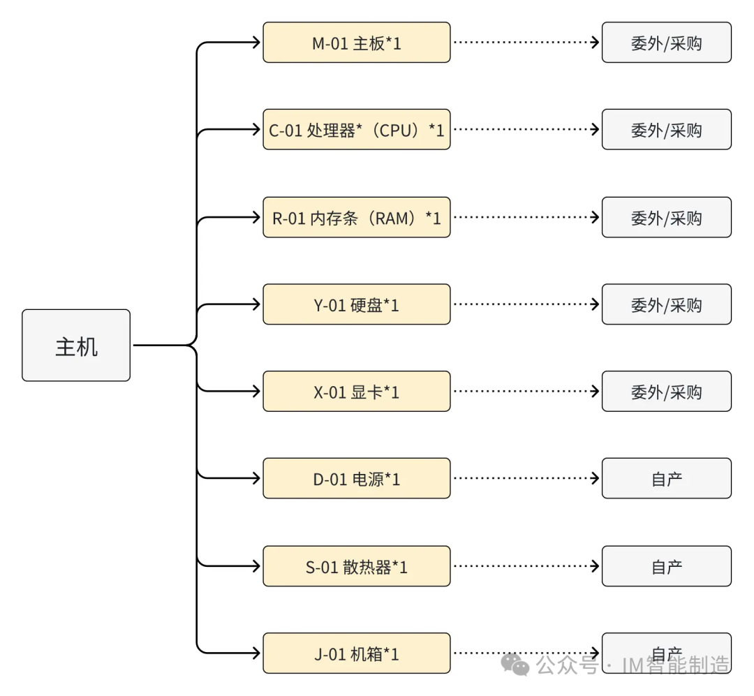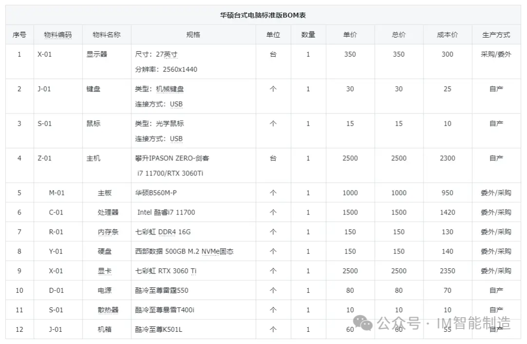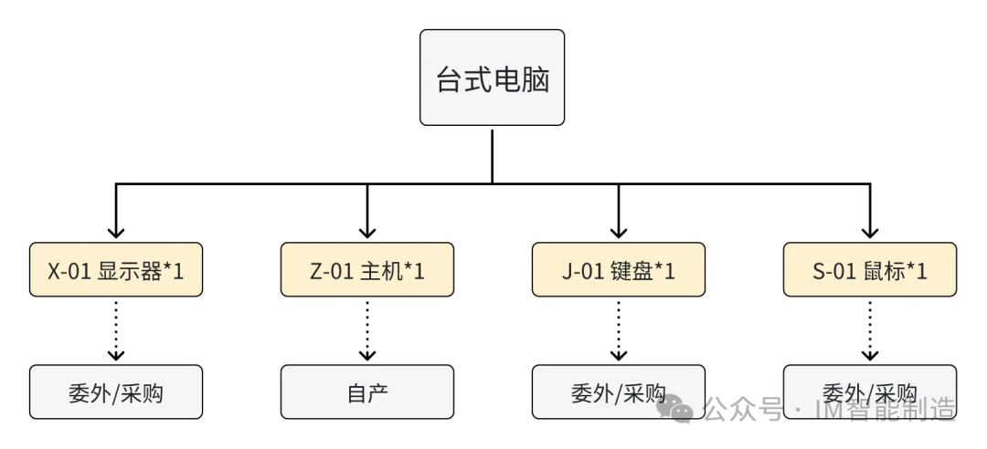 總的來說,BOM在整個產品生命周期中發揮著關鍵作用,幫助企業實現產品的設計、生產、銷售和服務的有效管理和執行。 產品BOM表分一級用料表、子級用料表,如果沒有多級相當于單層BOM,有多級則為多層BOM表; 用【臺式電腦】來舉例說明一下BOM表: 臺式電腦的結構,可以理解為由哪些部件、元件組成:主板、中央處理器(CPU)、內存條(RAM)、硬盤、顯卡、電源供應器、機箱、散熱器、顯示器、鍵盤、鼠標,這些元件就是物料。 首先按大類劃分:顯示器、主機、鍵盤、鼠標,同樣這些也屬于一級用料表,這些既然是物料,是不是要有物料編碼?以及一個成品需要的物料數量?這些物料來源是自產還是委外? ![]() ![]() ![]() ![]() 點晴模切ERP更多信息:https://moqie.clicksun.cn,聯系電話:4001861886 該文章在 2024/11/21 11:13:09 編輯過 |