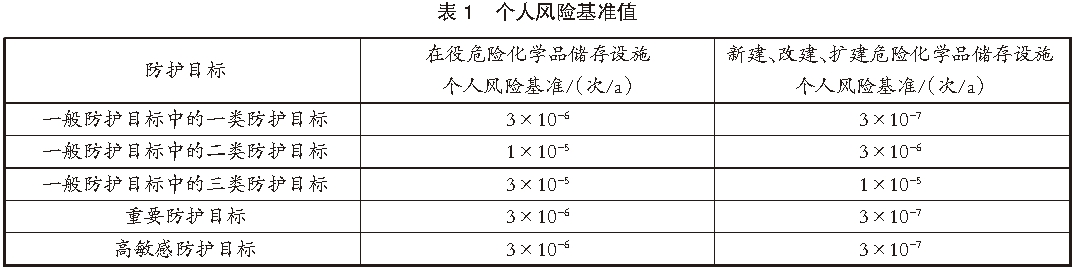 我國(guó)是集裝箱進(jìn)出口大國(guó),上海港、寧波舟山港、青島港等主要沿海集裝箱港口的年吞吐量均在世界港口中位于前列。由于集裝箱運(yùn)輸?shù)母咝院捅憷裕澜缟铣^(guò)70%的危險(xiǎn)化學(xué)品均通過(guò)集裝箱進(jìn)行海上運(yùn)輸。因此,我國(guó)的集裝箱堆場(chǎng)特別是危險(xiǎn)貨物集裝箱堆場(chǎng)數(shù)量規(guī)模也相對(duì)較大。不同于國(guó)外一些港口(例如比利時(shí)安特衛(wèi)普港、新加坡港等)采用危險(xiǎn)貨物集裝箱與普通貨物集裝箱混合堆存的方式,我國(guó)危險(xiǎn)貨物集裝箱一般堆存在危險(xiǎn)貨物集裝箱專(zhuān)用堆場(chǎng)內(nèi)。雖然我國(guó)相關(guān)標(biāo)準(zhǔn)規(guī)范對(duì)危險(xiǎn)貨物集裝箱堆場(chǎng)的安全距離、堆存方式等作出了規(guī)定,在一定程度上減少了“多米諾”效應(yīng)發(fā)生的可能性,但大量危險(xiǎn)貨物,特別是種類(lèi)、性質(zhì)不同的危險(xiǎn)貨物集中堆存,仍容易導(dǎo)致事故發(fā)生后產(chǎn)生連鎖反應(yīng)。近年來(lái),尤其是在天津港“8·12”瑞海公司危險(xiǎn)品倉(cāng)庫(kù)特別重大火災(zāi)爆炸事故發(fā)生后,我國(guó)對(duì)危險(xiǎn)貨物存儲(chǔ)的監(jiān)管方面日趨嚴(yán)格,危險(xiǎn)貨物集裝箱堆場(chǎng)數(shù)量總體呈減少趨勢(shì),但危險(xiǎn)貨物集裝箱的業(yè)務(wù)量和堆存需求卻在增加。這就導(dǎo)致為滿足堆存安全性的相關(guān)要求,分類(lèi)分區(qū)、間隔存放的危險(xiǎn)貨物集裝箱堆存方式可能會(huì)造成堆場(chǎng)存放空間不足。2022年12月1日實(shí)施的《港口作業(yè)安全要求第3部分:危險(xiǎn)貨物集裝箱》(GB 16994.3—2021)第7.7條提出:“裝載GB 6944—2012中8類(lèi)、9類(lèi)固態(tài)危險(xiǎn)貨物的集裝箱,當(dāng)所載貨物無(wú)副危險(xiǎn)性,包裝類(lèi)非I、II類(lèi)且不屬于危險(xiǎn)化學(xué)品時(shí),可與普通貨物集裝箱混堆。”該條款適用范圍僅為8類(lèi)、9類(lèi)的固態(tài)危險(xiǎn)貨物,且存在諸多限制條件和堆存要求,其他危險(xiǎn)性較高的危險(xiǎn)貨物仍存在堆存問(wèn)題。因此,針對(duì)我國(guó)危險(xiǎn)貨物集裝箱堆場(chǎng)的現(xiàn)狀和集裝箱堆場(chǎng)企業(yè)所存在的問(wèn)題和實(shí)際周轉(zhuǎn)需求,提出一種基于國(guó)內(nèi)港口風(fēng)險(xiǎn)基準(zhǔn)要求的危險(xiǎn)貨物集裝箱堆存方案優(yōu)化方法。1.1 港口風(fēng)險(xiǎn)基準(zhǔn)要求根據(jù)《危險(xiǎn)化學(xué)品生產(chǎn)裝置和儲(chǔ)存設(shè)施風(fēng)險(xiǎn)基準(zhǔn)》(GB 36894—2018)的規(guī)定可知:個(gè)人風(fēng)險(xiǎn)是指人員無(wú)任何防護(hù)長(zhǎng)時(shí)間處于某個(gè)場(chǎng)所,受到危險(xiǎn)化學(xué)品事故影響而死亡的頻率;社會(huì)風(fēng)險(xiǎn)是指發(fā)生大于等于N人群體死亡的事故累計(jì)頻率,即在危險(xiǎn)區(qū)域的企業(yè)員工和社會(huì)公眾發(fā)生某種傷害的頻次,用累計(jì)頻率(F)和死亡人數(shù)(N)曲線(F-N曲線)圖來(lái)表示。根據(jù)交通運(yùn)輸部《港口危險(xiǎn)貨物重大危險(xiǎn)源監(jiān)督管理辦法》(交水規(guī)〔2021〕6號(hào))第6條規(guī)定:構(gòu)成一級(jí)、二級(jí)港口重大危險(xiǎn)源的,港口經(jīng)營(yíng)人應(yīng)當(dāng)委托第三方,按照《危險(xiǎn)化學(xué)品生產(chǎn)裝置和儲(chǔ)存設(shè)施風(fēng)險(xiǎn)基準(zhǔn)》(GB 36894)的要求,采用定量風(fēng)險(xiǎn)評(píng)價(jià)方法確定個(gè)人和社會(huì)風(fēng)險(xiǎn)值。如果通過(guò)定量風(fēng)險(xiǎn)評(píng)價(jià)方法得出的個(gè)人或社會(huì)風(fēng)險(xiǎn)值超出標(biāo)準(zhǔn)規(guī)定的風(fēng)險(xiǎn)基準(zhǔn),則港口經(jīng)營(yíng)人需要采取有效的管控措施來(lái)降低相應(yīng)風(fēng)險(xiǎn)值,使其符合風(fēng)險(xiǎn)基準(zhǔn)的要求。1.2 個(gè)人風(fēng)險(xiǎn)基準(zhǔn)值基于前述可知,危險(xiǎn)貨物港口經(jīng)營(yíng)人的風(fēng)險(xiǎn)基準(zhǔn)是按照《危險(xiǎn)化學(xué)品生產(chǎn)裝置和儲(chǔ)存設(shè)施風(fēng)險(xiǎn)基準(zhǔn)》的要求執(zhí)行的,港口經(jīng)營(yíng)人儲(chǔ)存設(shè)施周?chē)姆雷o(hù)目標(biāo)個(gè)人風(fēng)險(xiǎn)值不能超過(guò)其中的個(gè)人風(fēng)險(xiǎn)基準(zhǔn)。由于計(jì)算危險(xiǎn)貨物堆場(chǎng)的安全容量,針對(duì)的是已經(jīng)建成的在役儲(chǔ)存裝置進(jìn)行計(jì)算,因此,進(jìn)行堆場(chǎng)安全容量計(jì)算時(shí)采用的個(gè)人風(fēng)險(xiǎn)基準(zhǔn)值不應(yīng)超過(guò)標(biāo)準(zhǔn)中的在役危險(xiǎn)化學(xué)品儲(chǔ)存設(shè)施個(gè)人風(fēng)險(xiǎn)基準(zhǔn)。《危險(xiǎn)化學(xué)品生產(chǎn)裝置和儲(chǔ)存設(shè)施風(fēng)險(xiǎn)基準(zhǔn)》對(duì)儲(chǔ)存設(shè)施周邊的一般防護(hù)目標(biāo)中的一類(lèi)、二類(lèi)、三類(lèi)防護(hù)目標(biāo)和重要、高敏感防護(hù)目標(biāo)的個(gè)人風(fēng)險(xiǎn)基準(zhǔn)均進(jìn)行了具體規(guī)定。個(gè)人風(fēng)險(xiǎn)基準(zhǔn)值見(jiàn)表1。