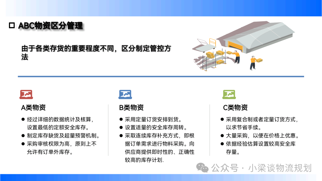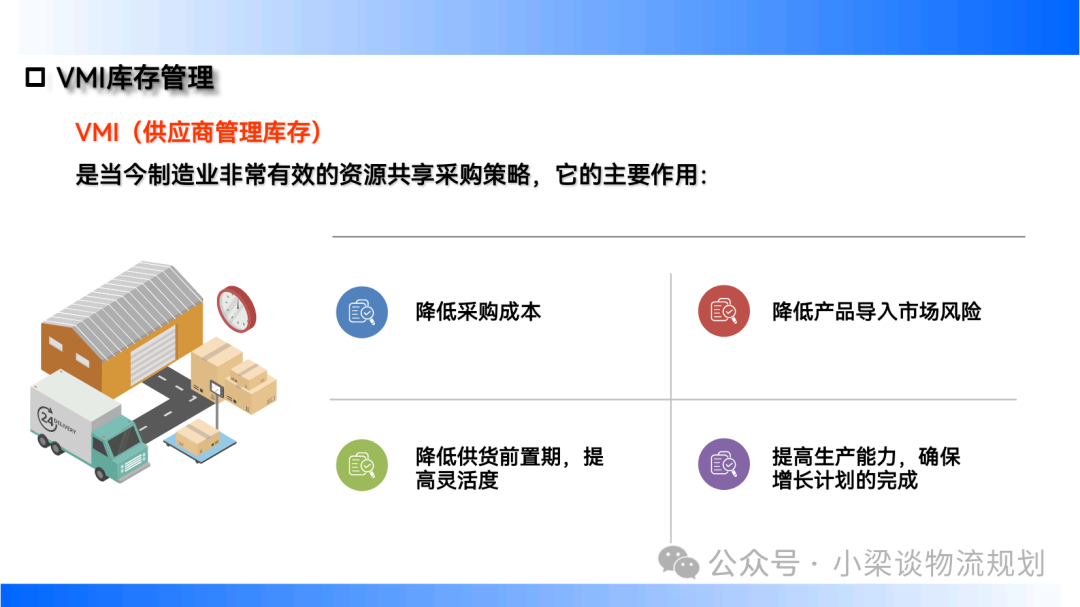 - 戰略庫存:低價購進價格波動大的物品,以節約成本,需考慮價格趨勢、廢棄風險及物料處理前景。