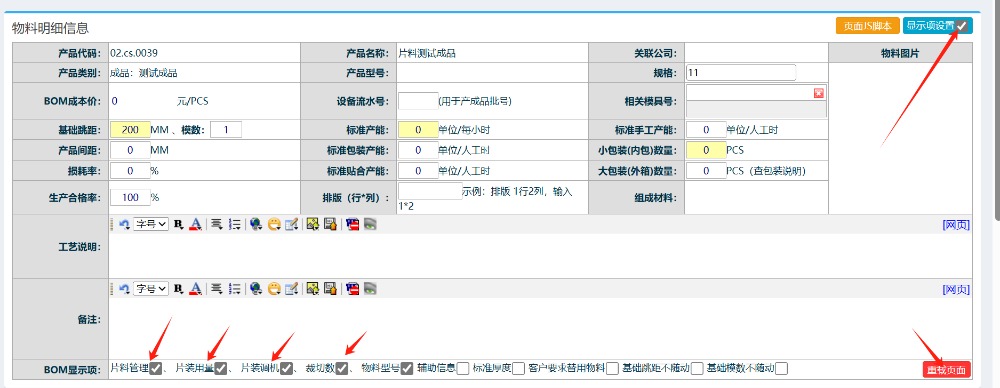 進(jìn)入界面后,點(diǎn)擊顯示選項(xiàng)設(shè)置,勾上片料相關(guān)字段,限即重載頁(yè)面,如下圖