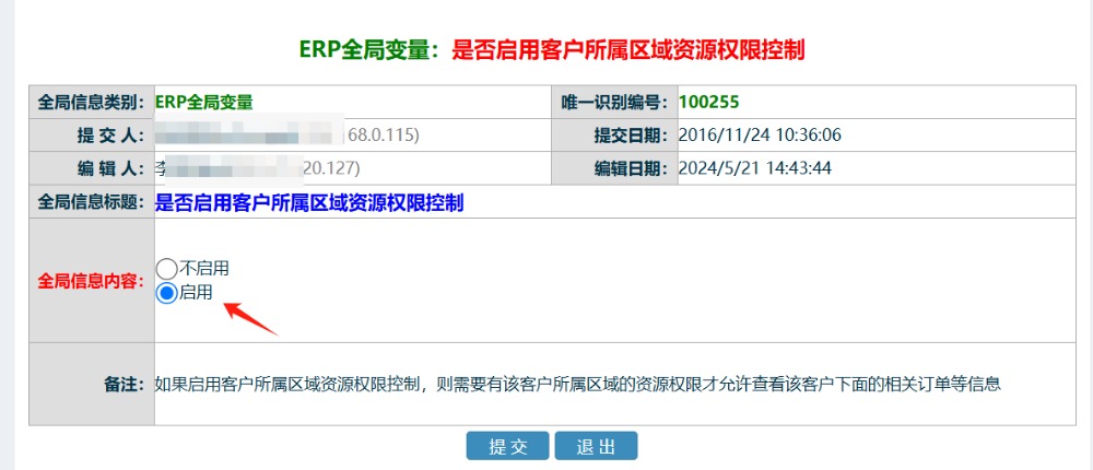 進入界面后,唯一碼欄位搜索100255,以及100254,點擊藍色字體,進入界面,選擇啟用,提交