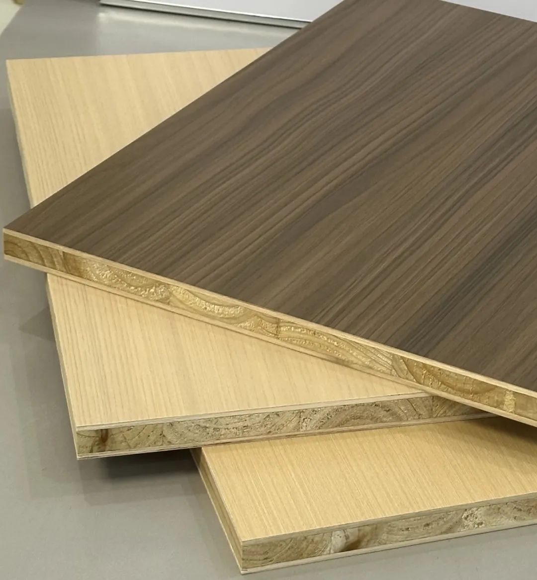 3. 多層板:像威化餅干一樣,一層層薄木片用膠水粘起來。 優點是防潮性、承重性和握釘力都比顆粒板和密度板強不少,結構更穩定,不容易變形。 缺點就是價格相對貴點,表面平整度可能沒密度板那么好(做門板的話得看工藝),側邊截面看著可能沒那么精致(封邊處理得好也問題不大)。