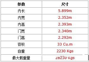 20尺標準集裝箱尺寸與規格 20尺標準集裝箱6米集裝箱 標準集裝箱一般都是通用的,其結構特點常為封閉式。所謂的密封集裝箱,也就是說該集裝箱的四周和頂部都是密封的。從下面的標準集裝箱的箱門描述中,我們可以看出不同集裝箱之間的差異: 標準集裝箱單側箱門和標準集裝兩側箱箱門; 標準集裝箱單側箱門和標準集裝箱兩側箱門又分為單塊箱門和兩塊箱門; 標準集裝箱單側箱門和標準集裝箱兩側箱門又分為單門和對開門。 ![]() 用途:標準集裝箱可以用來裝載各種不同類型的普貨(干貨)。適用于海運、陸運、空運。 ![]() 40尺標準集裝箱尺寸與規格 40尺標準集裝箱40GP箱,12米標準集裝箱 40尺標準集裝箱,也可稱之為12米集裝箱 40GP箱標準集裝箱一般都是通用的,其結構特點常為封閉式。所謂的密封集裝箱,也就是說該集裝箱的四周和頂部都是密封的。從下面的標準集裝箱的箱門描述中,我們可以看出不同集裝箱之間的差異: 標準集裝箱單側箱門和標準集裝兩側箱箱門; 標準集裝箱單側箱門和標準集裝箱兩側箱門又分為單塊箱門和兩塊箱門; 標準集裝箱單側箱門和標準集裝箱兩側箱門又分為單門和對開門。 ![]() 用途:標準集裝箱可以用來裝載各種不同類型的普貨(干貨)。適用于海運、陸運、空運。 ![]() 40尺高柜集裝箱尺寸與規格 40尺高柜集裝箱40HQ箱,12米超高集裝箱 40尺高柜集裝箱和40尺標準集裝箱結構設計一樣,除了在高度方向上比40尺柜標準集裝箱高外。和標準尺寸的集裝箱最大高度為2591毫米(8’6”)相比,40尺高柜集裝箱的高度為2896毫米(9’6”)。40尺高柜有40多英尺長,但是一般都做45尺柜的集裝箱。 一些承重能力最多達1000KG的系索環,通常安裝在前端梁上、底部橫梁和角柱那里! 許多40尺柜的集裝箱在前端梁板上有一個凹槽用來固定集裝箱上轉軸底架。這些凹槽可以對集裝箱進行高低的升降。 ![]() 用途:高柜集裝箱可以用來裝載所有類型的貨物(干貨)。但是,高柜集裝箱特別適合用來運輸質量輕、體積長的貨物,或者高度高達2.70米的貨物。 ![]() 該文章在 2025/8/9 14:21:22 編輯過 |