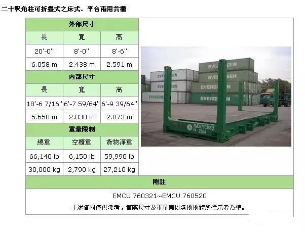 照片名稱:20'FR(Flat Rack角柱式折迭平板)