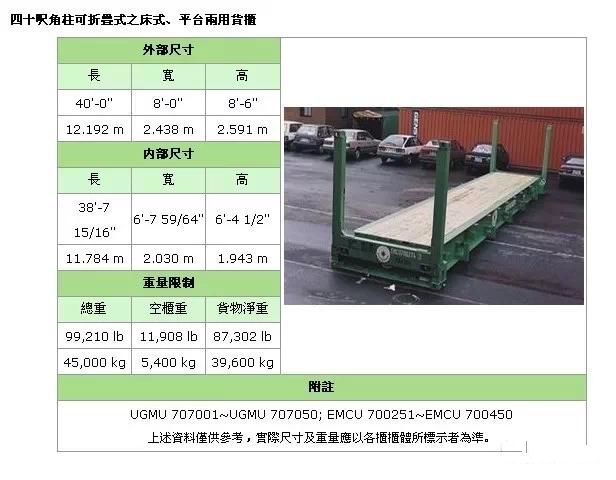 照片名稱:40'FR(Flat Rack角柱式折迭平板)
