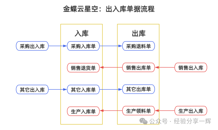 這章講解(庫存管理)操作。 1.出入庫單據(jù)流程講解; 2.庫存控制單據(jù)講解; 3.庫存關(guān)賬與報(bào)表查詢講解; 金蝶云星空:出入庫單據(jù)流程 常用的四種出入庫單據(jù)流程: 外購入庫:采購入庫單--采購?fù)肆蠁危?/span> 銷售出庫:銷售出庫單--銷售退貨單; 其它入庫:其它入庫單--其它出庫單; 生產(chǎn)入庫:生產(chǎn)領(lǐng)料單--生產(chǎn)入庫單; 操作都一樣,用(下推)單據(jù)或(關(guān)聯(lián))上聯(lián)單據(jù)。