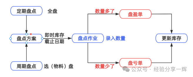 定期盤點(diǎn)(全盤)和周期盤點(diǎn)(物料按ABC分級(jí))。 流程:新增盤點(diǎn)方案--(實(shí)地盤點(diǎn))--盤點(diǎn)作業(yè)(錄入數(shù)量)--根據(jù)差異自動(dòng)生成《盤盈單》或《盤虧單》,審核確認(rèn)后觸發(fā)庫存調(diào)整。