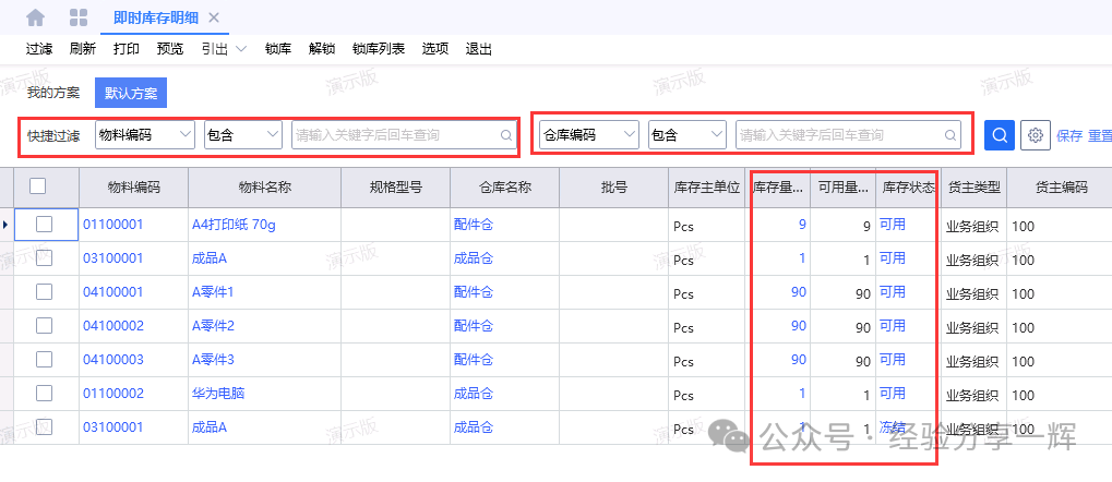 即時(shí)庫存:查看(物料)實(shí)時(shí)庫存的數(shù)量。 即時(shí)庫存明細(xì):查看(物料)庫存實(shí)時(shí)數(shù)量和狀態(tài)。
