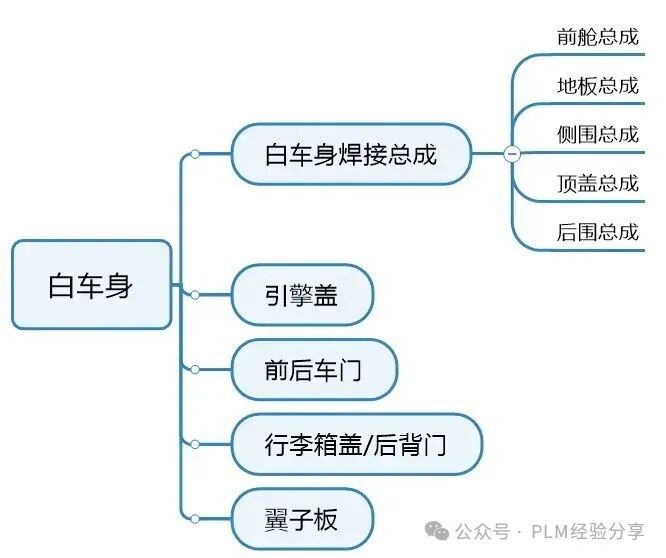 - 汽車(chē)的白車(chē)身也是汽車(chē)的BOM中最復(fù)雜的,尤其結(jié)合沖壓、焊接和涂裝的工藝,有些企業(yè)將BOM可以設(shè)計(jì)到9-10層,但這么復(fù)雜的BOM,對(duì)于汽車(chē)BOM的配置化管理也是很大的挑戰(zhàn),因此目前很多汽車(chē)企業(yè)都對(duì)車(chē)身的結(jié)構(gòu)組成進(jìn)行了優(yōu)化,包括組件模塊化和工藝集成化,組件模塊化主要是對(duì)車(chē)身的組成再次扁平化,例如白車(chē)身焊接總成默認(rèn)是5大件,但實(shí)際有些企業(yè)可以劃分更多,這樣減少不必要的過(guò)程BOM層級(jí),其次是對(duì)車(chē)身沖壓工藝的改善,例如以前存在大量的焊接組件,但隨著大噸位沖壓和一體化成型技術(shù)的發(fā)展,將傳統(tǒng)汽車(chē)甚至達(dá)到上千零件焊接控制到300左右,特斯拉Cybertruck甚至達(dá)到100個(gè);當(dāng)然汽車(chē)行業(yè)發(fā)展標(biāo)準(zhǔn)化程度非常高,不同企業(yè)在進(jìn)行產(chǎn)品結(jié)構(gòu)規(guī)劃和BOM的設(shè)計(jì)時(shí),也都會(huì)參考對(duì)應(yīng)的國(guó)家標(biāo)準(zhǔn)行業(yè)規(guī)范等,例如QC/T 265等
