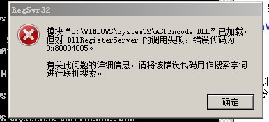 解決方法:先將上面下載組件中的壓縮包打開,將壓縮包中的文件“ASPEncode.DLL”復制到目錄“C:\WINDOWS\SYSTEM32\”中,然后用管理員模式運行C:\WINDOWS\SYSTEM32\CMD.EXE,手工輸入組件注冊命令:“regsvr32 /s ASPEncode.DLL”和“regsvr32 /s %windir%\system32\ASPEncode.DLL”,即可解決。