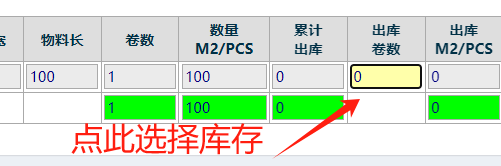 如果是卷料點擊卷數,非卷料點擊數量,在彈出的窗口選擇庫存出庫 如下圖
