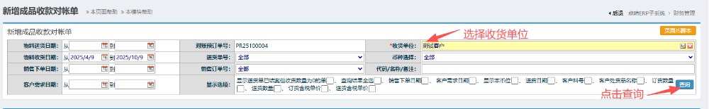 2.點擊進(jìn)入頁面之后,選擇收貨單位,點擊查詢。