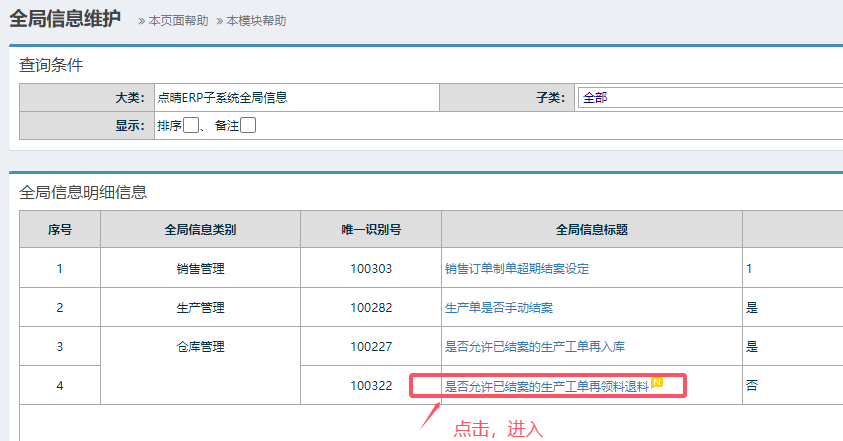 點晴模切ERP-如何設置已結案的生產工單禁止再領料退料