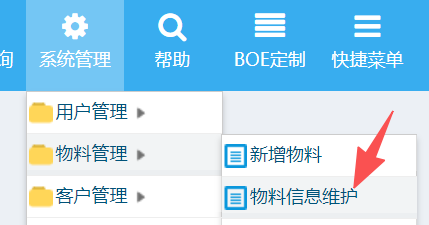 操作步驟:系統管理-物料管理-物料信息維護