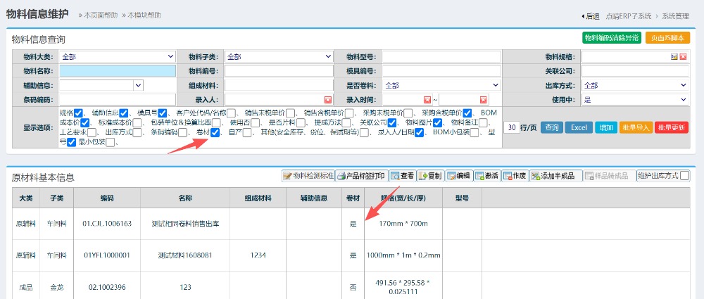 點晴模切ERP查詢材料是否卷料操作