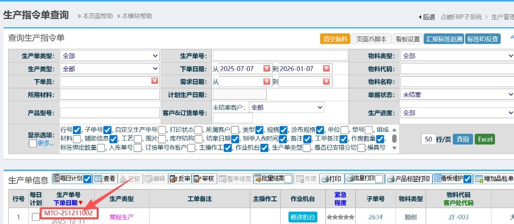 方法1: 操作步驟:生產(chǎn)管理-排產(chǎn)管理-任務(wù)單明細(xì)管理