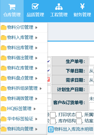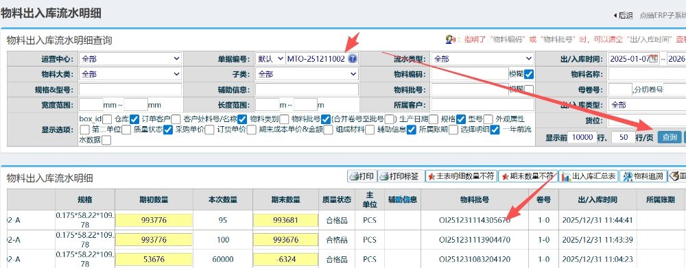 方法2: 操作步驟:倉(cāng)庫(kù)管理-物料流向管理-物料出入庫(kù)管理明細(xì)