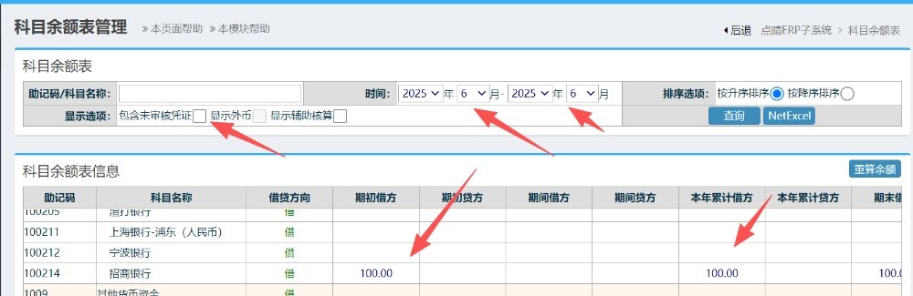 進(jìn)入菜單-報(bào)表查詢-科目余額表查詢