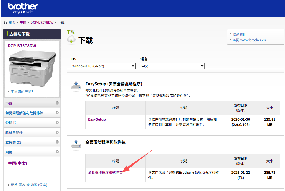 全套驅(qū)動程序軟件包本地下載:地址1、地址2(從此地址下載即可) 軟件及驅(qū)動兄弟官網(wǎng)下載地址:下載 | DCP-B7578DW | 中國 | Brother