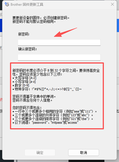 2、這時需要輸入設(shè)備密碼才可以進行下一步,密碼默認在打印機后面的標簽上貼著“PWD”字樣,輸入默認密碼,點擊“下一步” 不同設(shè)備的默認密碼是不同的,具體參考自己購買的打印機設(shè)備后面標簽。本次教程設(shè)備的默認密碼為:j7SHAncJ 然后需要設(shè)置“新密碼”,按照下面的要求設(shè)置即可。