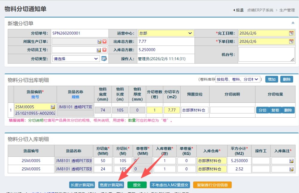 進入后,點擊按寬度計算尾料,然后提交,完成操作 ![]() 點晴模切ERP更多信息:https://moqie.clicksun.cn,聯系電話:4001861886 該文章在 2026/2/6 11:15:13 編輯過 |