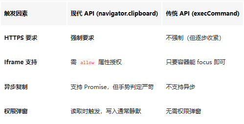 權限陷阱:為什么你的“點擊復制”在某些瀏覽器或 iframe 里會失效?