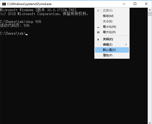 :win11運(yùn)行bat文件顯示亂碼怎么回事?![]() 記事本打開bat,檢查編碼相關(guān)代碼,如果出現(xiàn)類似chcp 936,則刪掉,然后另存文件為ANSI,重新運(yùn)行。 如果不想改代碼,右鍵命令提示符窗口的標(biāo)題,選“默認(rèn)值”: