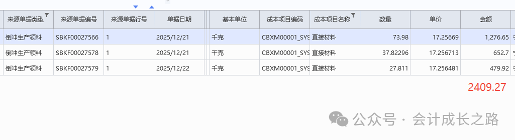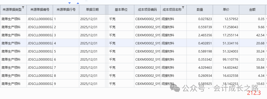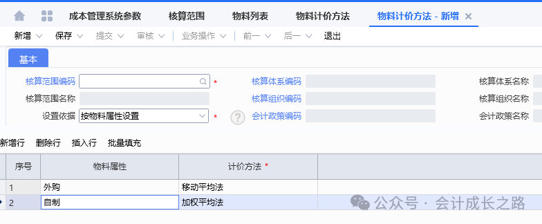 2、金蝶云星空物料計(jì)價(jià)方法設(shè)置:成本管理-存貨核算-核算范圍-新增設(shè)置。3、每個(gè)存貨價(jià)值區(qū)域都可有其獨(dú)立的計(jì)價(jià)方式,比如某核算范圍的計(jì)價(jià)方法是加權(quán)平均、但該核算范圍下有某類特殊物料要按移動(dòng)平均計(jì)價(jià),則可以采用此物料計(jì)價(jià)方法進(jìn)行設(shè)置(一般不建議使用)。4、物料屬性在新建物料時(shí)定義,目前金蝶云星空不支持自定義修改添加物料屬性,只能使用標(biāo)準(zhǔn)系統(tǒng)預(yù)置的物料屬性,強(qiáng)行自定義添加會(huì)導(dǎo)致該屬性物料無法正常參與存貨核算。5、物料計(jì)價(jià)方法變更: 主要是指企業(yè)采用某計(jì)價(jià)方法核算一段時(shí)間后,因管理或?qū)ν鈭?bào)告的需要需采用另一種計(jì)價(jià)方法進(jìn)行核算,這樣就需通過物料計(jì)價(jià)方法變更對(duì)現(xiàn)有計(jì)價(jià)方法進(jìn)行變更。變更之后無法反審核刪除,需謹(jǐn)慎使用。6、金蝶云星空目前沒有個(gè)別計(jì)價(jià)法,要達(dá)到個(gè)別計(jì)價(jià)法功能,需要借助批號(hào)來執(zhí)行,在每個(gè)物料的物料維度庫存屬性批號(hào)行勾選影響出庫成本可以實(shí)現(xiàn)。通過生產(chǎn)訂單下的生產(chǎn)領(lǐng)料單、生產(chǎn)補(bǔ)料單、生產(chǎn)退料單歸集(投入金額),根據(jù)BOM表定額耗用量在完工產(chǎn)品和在產(chǎn)品之間分配。例如:本期生產(chǎn)數(shù)量30000只,合理損耗210只,直接領(lǐng)料金額25483.91,倒沖領(lǐng)料金額2409.27(完工數(shù)量25477只)間接領(lǐng)料分?jǐn)偨痤~212.3(完工產(chǎn)品承擔(dān))本期投入直接材料金額=25483.91+2409.27=27893.18;本期間接材料金額=212.3,全部分?jǐn)偟酵旯ぎa(chǎn)品。本期完工25477只,合理損耗=25477/30000*210=178只;(25477+178)/30210*25483.91+2409.27=24050.77;期末在產(chǎn)品4523只直接材料金額=27893.18-24050.77=3842.41。本實(shí)例涉及了多種領(lǐng)料方式、合理損耗、共耗材料分?jǐn)?,是比較復(fù)雜的一種分配過程。實(shí)際操作中物料材料金額分配不是課本中單純的根據(jù)總金額/總數(shù)量*入庫數(shù)量或者未入庫數(shù)量得到的。需要從業(yè)務(wù)邏輯多方面考量。