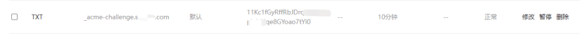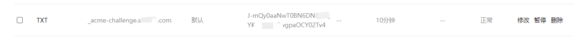 2、登錄域名控制臺,按照控制臺輸出的信息,添加TXT記錄