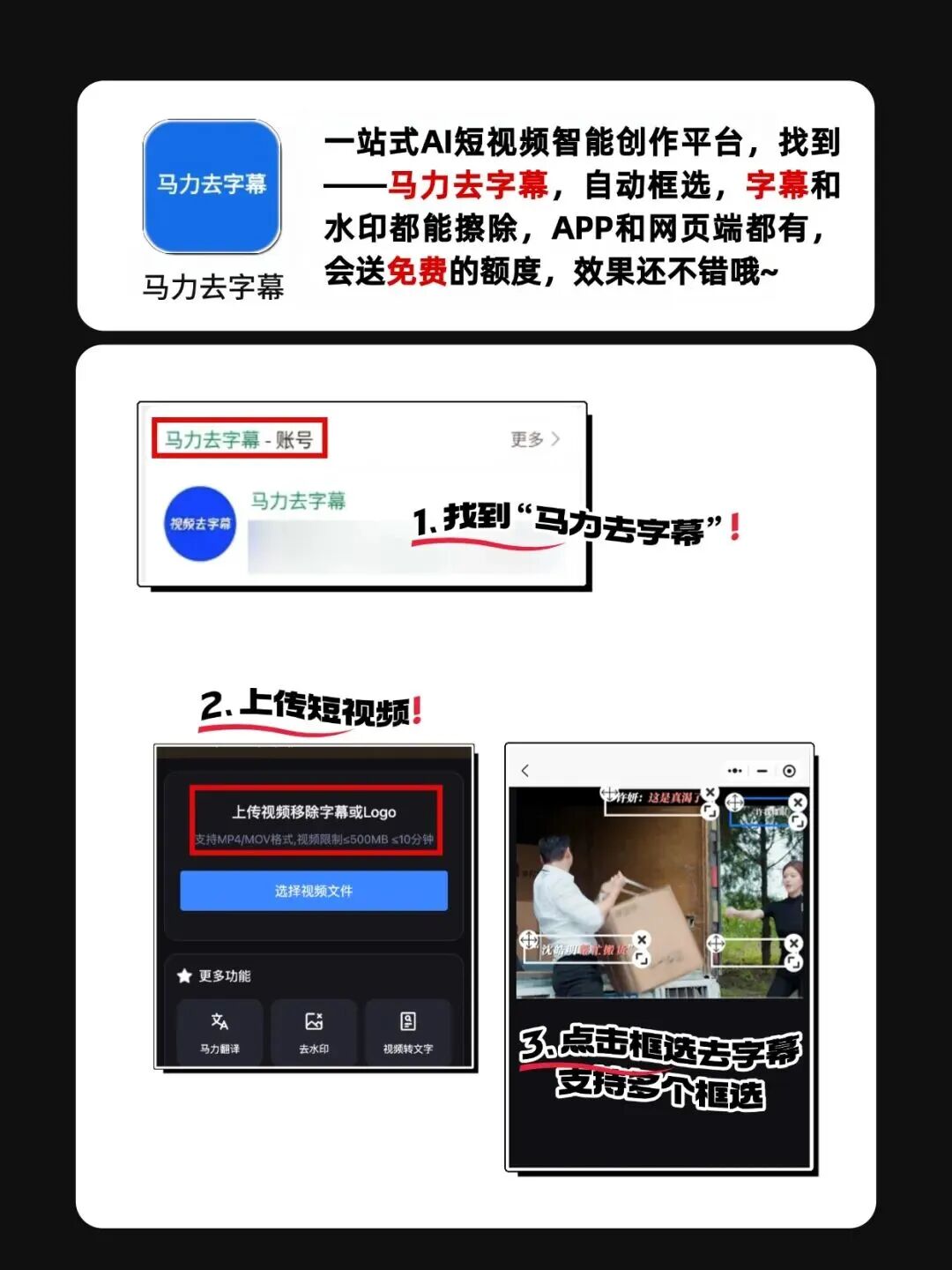 今天我就用這篇干貨,跟大家掏心窩子分享5個親測有效的方法。其中有一個神器,是我最近用了就離不了的,我會把它放在第一個重點聊,也會客觀告訴你它好在哪、以及什么情況下選別的更合適。 方法一:馬力去字幕——省心的“傻瓜式”操作(強烈推薦)咱們直接上硬菜。如果你和我一樣,既沒有專業剪輯基礎,也不想為了去個水印下載幾十個G的大型軟件,那“馬力去字幕”絕對是個驚喜。 傳送門入口:免費體驗入口