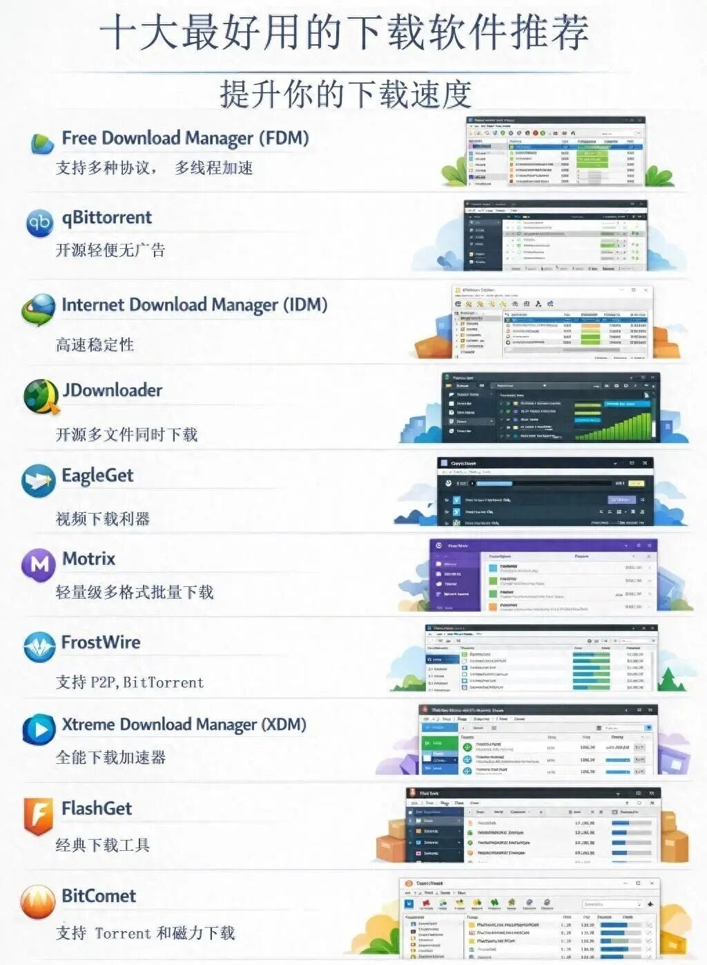 這些免費的下載軟件各具特色,不同的平臺和需求可以選擇不同的軟件。如果你經常下載文件、視頻或軟件,使用這些工具能大大提升下載速度和效率。現在就試試它們,享受更順暢的網絡體驗吧!
