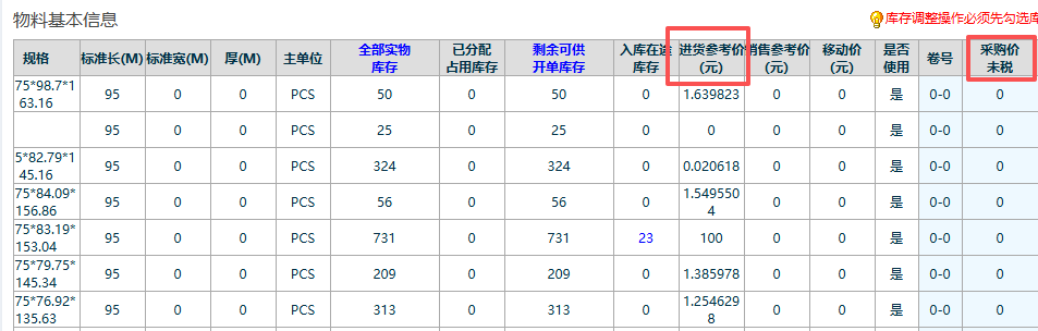 點晴模切ERP--物料庫存查詢的進貨參考價有顯示,但是采購價未稅顯示為0是怎么回事?
