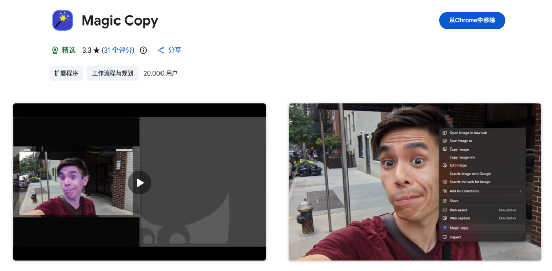 摳圖不用再去下載任何軟件,瀏覽網頁時直接點擊右鍵,選擇magic copy,就可以瞬間完成操作,速度特別快,而且100%完全免費。