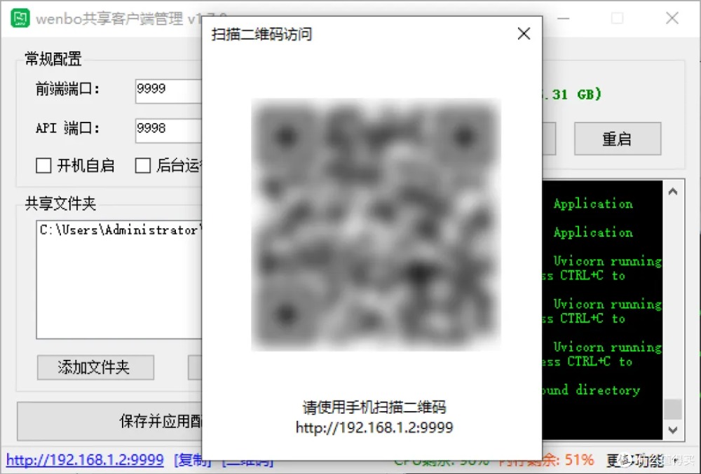 啟動后,左下角會顯示訪問地址(電腦端)和二維碼(手機端),掃碼即用。