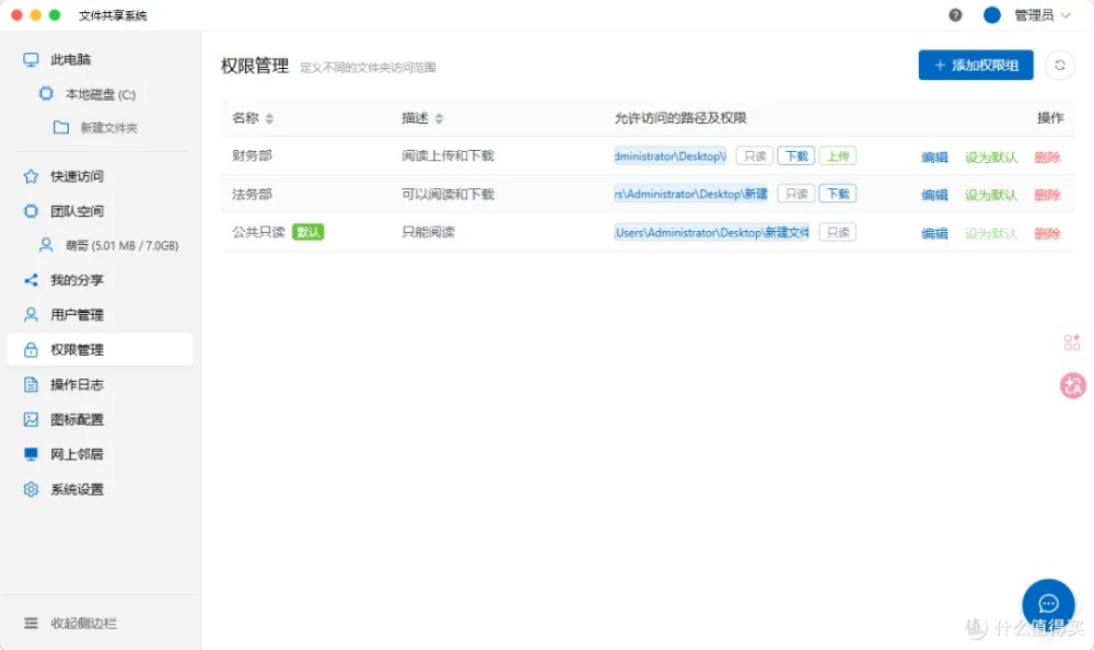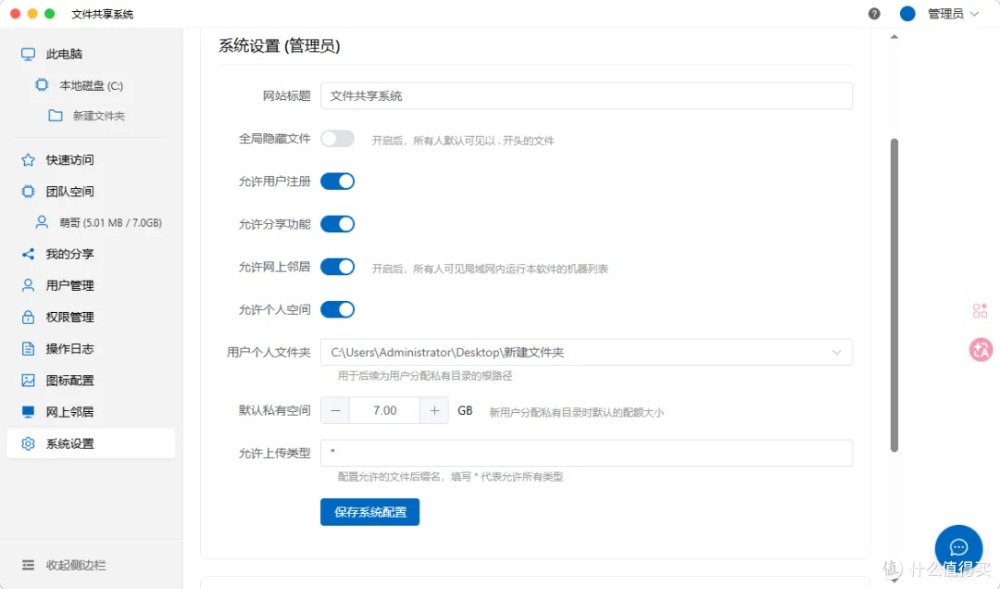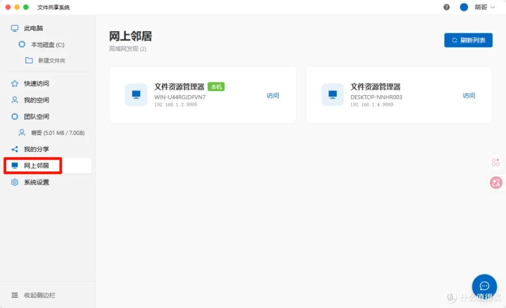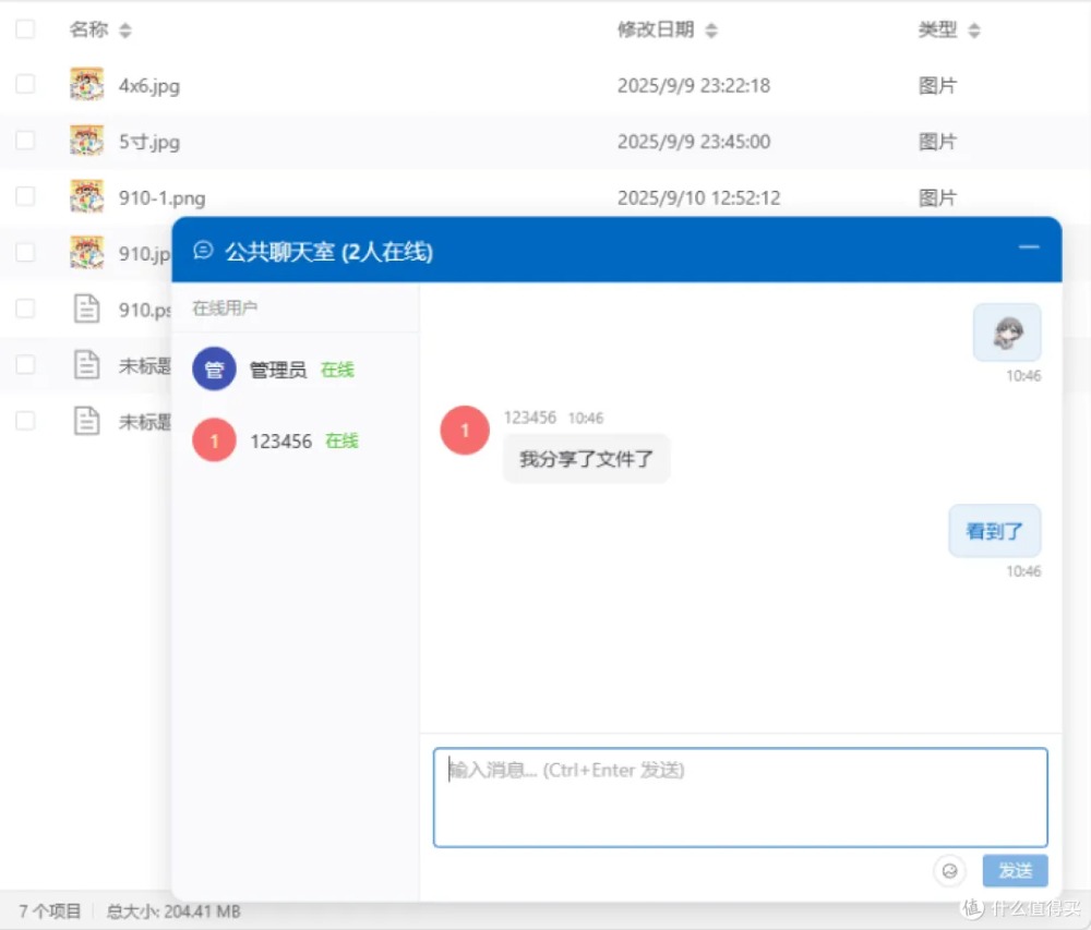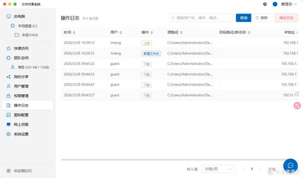 ?? 權限分組 ?? 操作審計 ?? 系統設置 普通用戶視角登錄后在權限范圍內訪問共享資源,也可在我的空間中創建團隊空間,同組人員協作更高效。 網上鄰居功能更絕——局域網內多臺電腦運行該工具時,可一鍵切換不同服務器,跨部門資源共享無縫銜接。 內置聊天室,邊傳文件邊溝通,告別微信來回甩鏈接的繁瑣。 長期使用建議如需持續服務,記得勾選開機自啟 + 后臺運行,服務器級穩定在線。