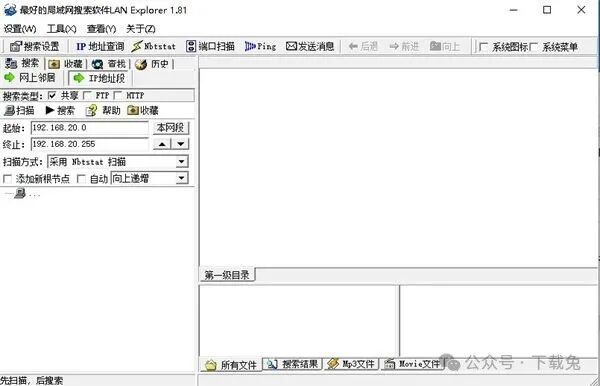 下載地址附件:LanExplorer-v1.81(局域網搜索軟件).zip? 應用簡介LanExplorer中文版,一款局域網里的“掃蕩”工具,能多線程把局域網上所有工作組、主機、打印機、共享文件全翻出來,還能自動搜共享的mp3、電影,或者自定義搜你想找的文件。登錄用戶名密碼可以自己設,不同主機還能分別配。 它內置了nbtstat,掃某個IP段內的所有主機速度極快,直接拿下對方主機名、工作組名、用戶名、MAC地址,訪問資源也很方便。還能掃端口、發消息,局域網里拷文件支持斷點續傳。操作簡單,完全免費,算是局域網搜索里挺順手的一個工具。